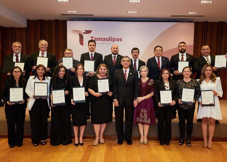 También recibieron su designación como nuevos funcionarios del Gobierno de Tamaulipas: Lucía Aimé Castillo Pastor, Secretaria de Educación; Vicente Joel Hernández Navarro, Secretario de Salud; Karina Saldívar Lartigue, Secretaria de Desarrollo Urbano y Medio Ambiente; Pedro Cepeda Anaya, Secretario de Obras Públicas; Norma Pedraza Melo, Contralora Gubernamental; Benjamín Hernández Rodríguez, Encargado de Despacho de la Secretaría de Turismo; Juan J. Hernández Torres, Encargado de Despacho de Pesca y Acuacultura; Tania Contreras López, Consejera Jurídica del Gobernador y Geancarlo Boneta Cavazos, Director del DIF Tamaulipas.
