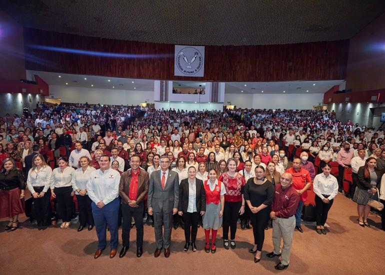Ante las y los trabajadores de la educación, también destacó que el aprendizaje constante es transformación.