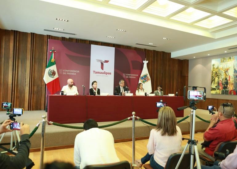 Durante esta conferencia de prensa, donde estuvo acompañado de la secretaria de Desarrollo Económico Ninfa Cantú Deándar, la Contralora Gubernamental Norma Angélica Pedraza Melo, la asesora jurídica Tania Gisela Contreras López y el director general de la Comisión Estatal del Agua Raúl Quiroga Álvarez, el gobernador también se refirió a los resultados de su gira de trabajo por Estados Unidos, cuyo objetivo fue posicionar a Tamaulipas como la mejor opción, para la instalación de nuevas empresas y el desarrollo de proyectos.