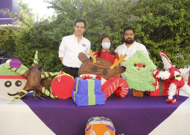 El director general del DIF Estatal, Geancarlo Bonetta Cavazos agradeció a nombre de la institución, el donativo de manos de Klaudia Sánchez Walle, maestra del mencionado plantel escolar, que hizo entrega simbólica de una parte de las piñatas.