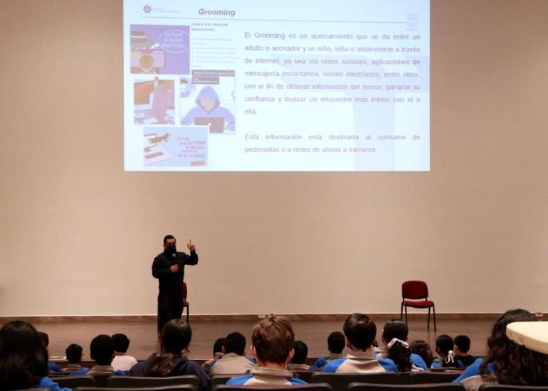Además de abordar los temas de ciberacoso, ciberseguridad y ciberextorsión; se les compartió información para identificar prácticas que arriesgan su navegación en internet, tales como el grooming, el sexting y el ciberbullying.