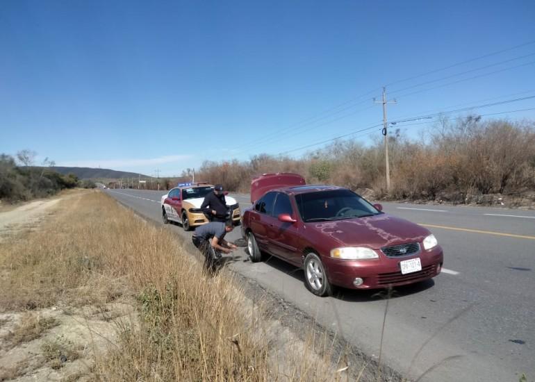 Villagrán, Tamaulipas.- Con el objetivo de prevenir accidentes derivados de fallas mecánicas y en los neumáticos, personal de la Guardia Estatal de Apoyo Carretero auxilian de manera permanente a los conductores que circulan por carretera.