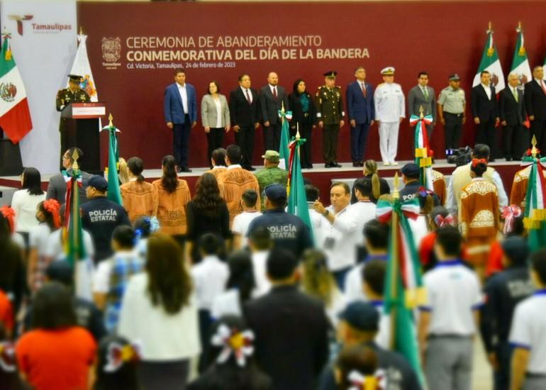 Este viernes se llevó a cabo la ceremonia de abanderamiento conmemorativa del Día de la Bandera en las instalaciones del Polyforum de Ciudad Victoria, misma que se celebra a nivel nacional.