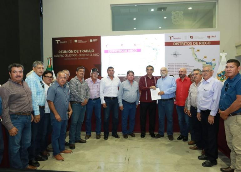 Usuarios de los siete Distritos de Riego de Tamaulipas, recibirán un aumento del 30 por ciento para el Programa de Apoyo a la Infraestructura Hidroagrícola, el cual ya fue autorizado por el gobernador del Estado Américo Villarreal Anaya.
