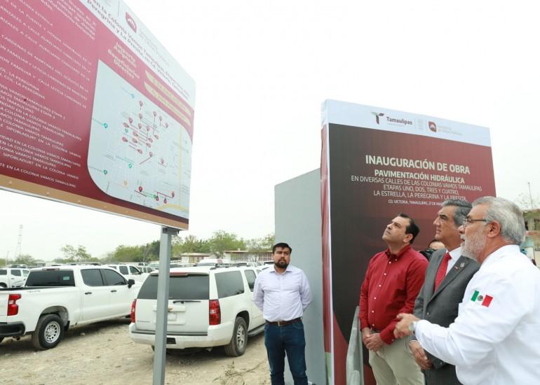 Tras inaugurar la pavimentación de calles de las colonias Vamos Tamaulipas, etapas Uno, Dos, Tres y Cuatro, La Estrella, La Peregrina y La Presita, el gobernador expresó que su gobierno trabaja en muchas áreas, que no tienen esta repercusión tangible como es la obra que hoy se entrega, pero es también muy necesaria y prioritario.