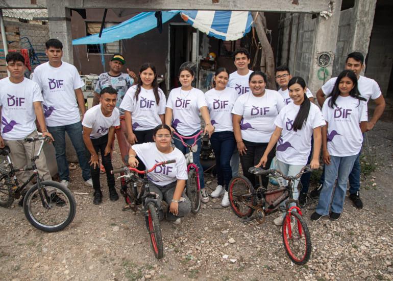 Un total de 15 integrantes de este grupo visitaron a David Alberto Molina Carrillo, vecino de esa comunidad que se dedica a la reparación de bicicletas, para colaborar con él en la adecuación de varias de ellas, que se entregarán a 30 menores en situación vulnerable, como parte de las actividades del “Día del Niño y de la Niña”.