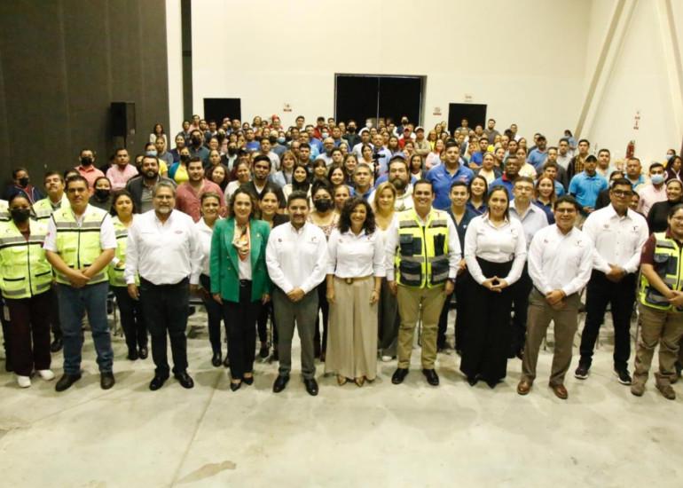 La secretaria del Trabajo agradeció la participación de la coordinación estatal de Protección Civil a cargo de Luis Gerardo González de la Fuente, en este evento representado por Juan Antonio López Hernández, director de enlaces con dependencias, organismos e instituciones, capacitación e inspecciones.