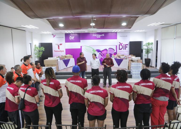 Geancarlo Bonetta Cavazos director general del DIF Estatal agradeció a las jugadoras y al equipo técnico de Correcaminos por su noble acción, mencionando que esta aportación servirá para seguir apoyando a las familias que mas lo necesitan, llevándoles estos productos que donaron los aficionados, quienes con esta acción se convierten en mensajeros de paz uniéndose a las actividades que realiza esta institución de asistencia social.