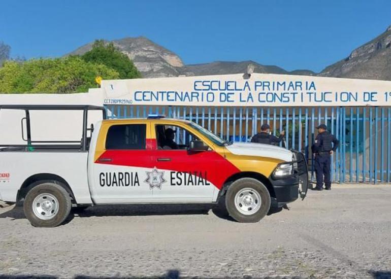 Ante la falta de personal docente en instituciones educativas durante el periodo vacacional, personal de la Guardia Estatal mantiene vigilancia en planteles a través del operativo ‘’Escuela Segura’’.