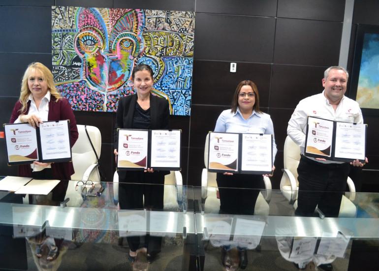 El convenio fue firmado por las secretarias de Economía; Ninfa Cantú Deandar; de Bienestar, Verónica Aguirre de Los Santos; la directora del Fondo Tamaulipas, Sandra Mejía y el subsecretario de Derechos Humanos y Articulación Social, Esteban Etienne Ruiz.