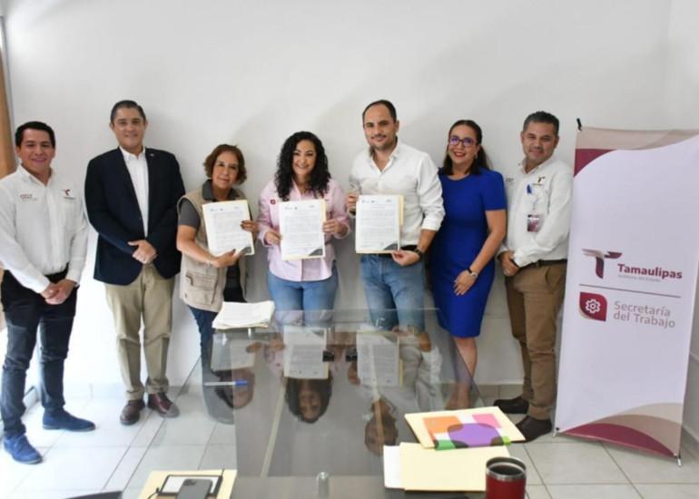 La Secretaría del Trabajo y Previsión Social del gobierno de Américo Villarreal Anaya, atestiguó la ratificación del convenio de revisión salarial entre la empresa maquiladora Kemet y el Sindicato Industrial de Maquiladoras, representado por su secretaria general, en el Centro de Conciliación Laboral de Tamaulipas.