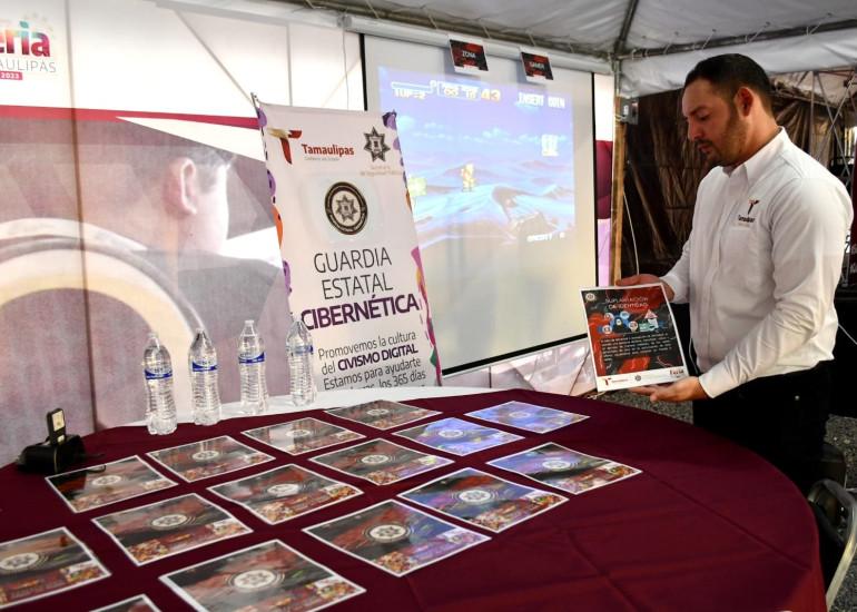 Gracias a las dinámicas interactivas que ofrece la Guardia Estatal Cibernética dentro de la Feria Tamaulipas 2023, las y los visitantes han estrechado su colaboración con esta unidad de la Guardia Estatal en el combate de delitos digitales.