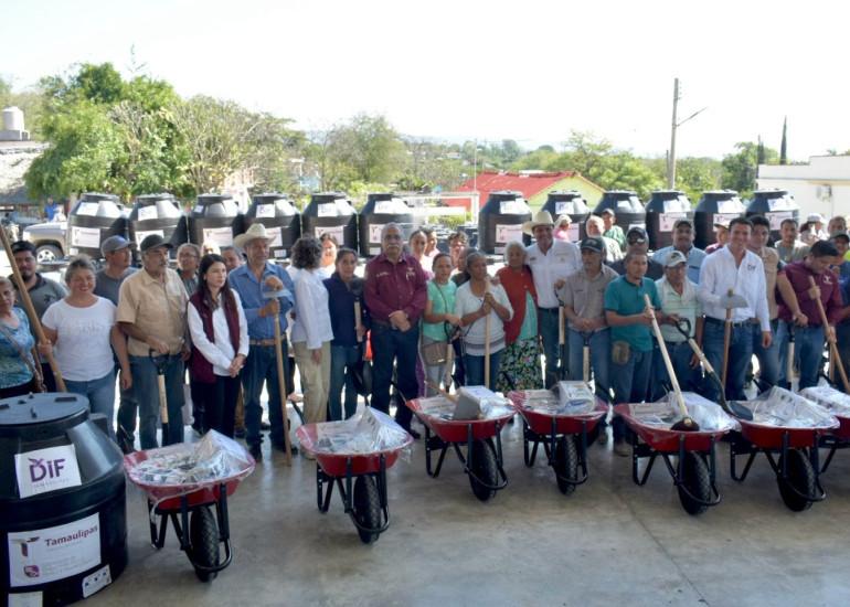 Nuevo Morelos, Tamaulipas.- La Secretaría de Desarrollo Rural, Pesca y Acuacultura en coordinación con el Sistema DIF Estatal y la Delegación de Programas Federales para el Bienestar Social en Tamaulipas, realizó la entrega de apoyos del Programa de Fomento a la Producción Rural que consiste en paquetes de granjas de aves de postura y huertos de traspatio, en el municipio de Nuevo Morelos, Tamaulipas.