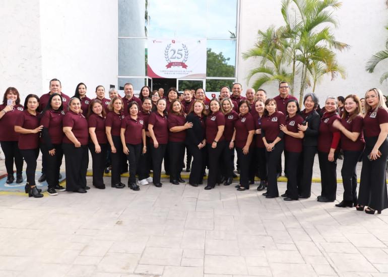 El secretario de Salud, Vicente Joel Hernández Navarro, acompañó a los más de 100 trabajadores que laboran en el Laboratorio Estatal de Salud Pública de esta ciudad, a celebrar su 25 aniversario, labor que han realizado con sentido humano y un compromiso que los caracteriza.
