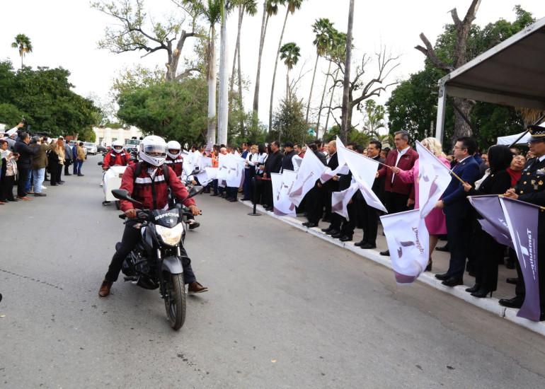 Al término de la ceremonia, se dio el banderazo de salida al nuevo parque vehicular.