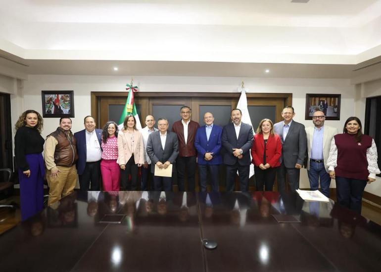 El gobernador estuvo acompañado por la secretaria del Trabajo, Olga Sosa Ruíz; de Desarrollo Urbano y Medio Ambiente, Karina Saldívar Lartigue; el secretario de Desarrollo Energético, José Ramón Silva; de Recursos Hidráulicos para el Desarrollo Social, Raúl Quiroga Álvarez; el jefe de la Oficina del Gobernador, Ricardo Guerrero Morales y la consejera jurídica del Ejecutivo, Tania Contreras López.