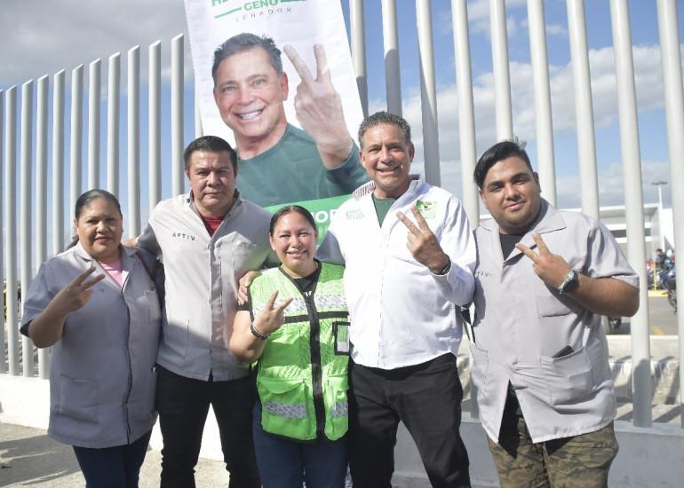 Geño accedió a tomarse fotografías con los trabajadores, quienes reconocen en el político su don de gente y gran corazón, además del amor que tiene por Tamaulipas.
