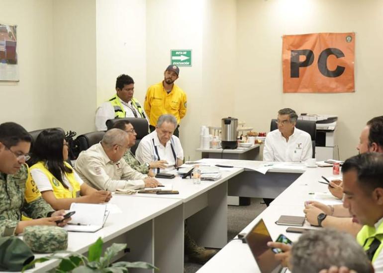 En la reunión, el gobernador hizo un reconocimiento y destacó la colaboración de los pobladores de las comunidades ejidales afectadas que se han sumado de manera voluntaria a las tareas de combate al incendio.