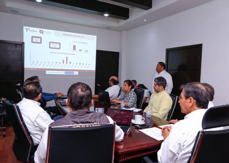 Ciudad Victoria, Tamaulipas.- Ante el inicio de la tercera ola de calor, en la que se registran temperaturas extremas por encima de los 42 grados en casi todo el estado, este lunes se llevó a cabo la Sesión Extraordinaria del Comité Estatal de Seguridad de Salud, con el fin de reforzar las medidas de prevención y alerta para evitar en lo posible afectaciones a la población.
