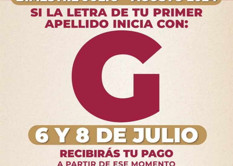corresponde a quienes su primer apellido inicia con la letra G y el sábado 13 de julio a las letras N, Ñ, O, P, Q.