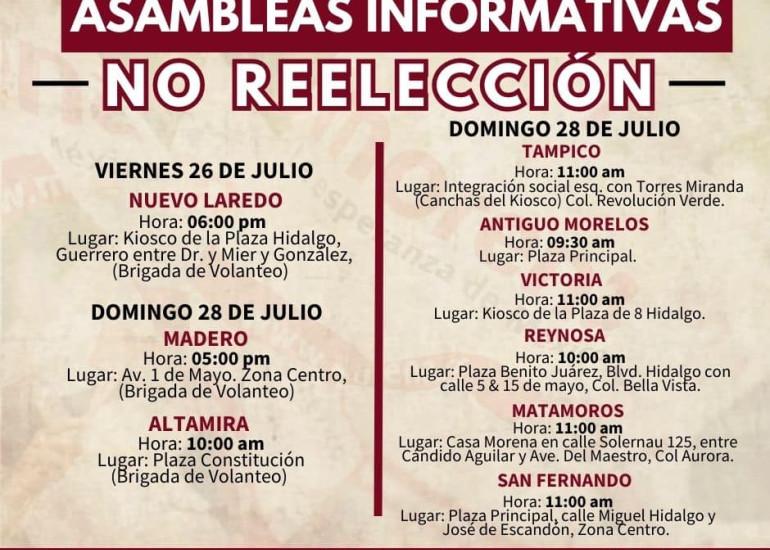 Anuncia morena Tamaulipas Asamblea Informativa sobre la “No Reelección”