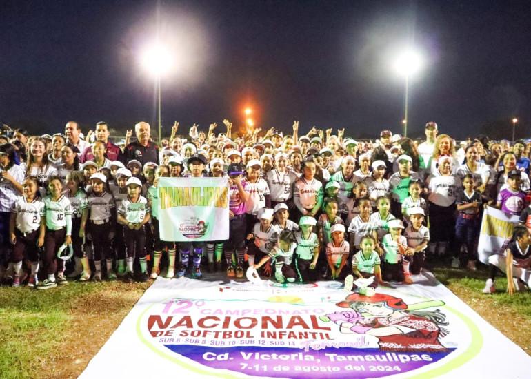 Más de 500 jugadoras de edades comprendidas entre los 4 y 14 años, participan en el Campeonato Nacional de Softbol Femenil Infantil que se realiza en Ciudad Victoria, y que fue inaugurado el pasado miércoles, siendo el Parque Praxedis Balboa, el escenario para dar inicio a esta competencia.