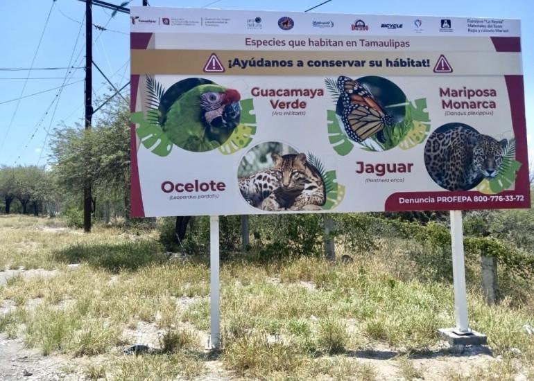 Refirió que para ello se han instalado más de 25 señaléticas faunísticas, del jaguar en el ejido Felipe Ángeles, así como en la Plaza de Jaumave, Ocampo y en el parque Ecológico Biósfera el Cielo, en Gómez Farías.