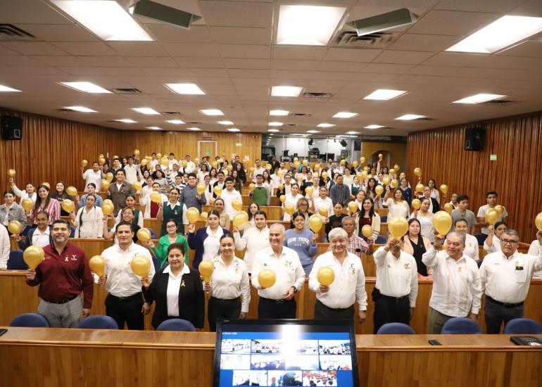 El secretario de Salud, Vicente Joel Hernández Navarro, inauguró los trabajos que bajo el lema "Dorado es el color de la fortaleza, el coraje y resiliencia", "Dorado es el color simbólico del Cáncer Infantil", refuerza los conocimientos del personal de salud sobre los signos y síntomas de alerta, así como las acciones de atención y seguimientos para la detección temprana.