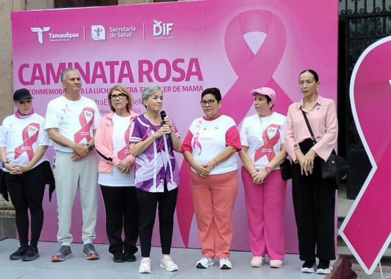 Para conmemorar el Día Internacional de la Lucha contra el Cáncer de Mama, la doctora María Santiago de Villarreal, presidenta del Sistema DIF Tamaulipas, en compañía por el secretario de Salud, Vicente Joel Hernández Navarro, dio el banderazo de salida de la “Caminata Rosa” con la cual se busca concientizar a mujeres y hombres sobre lo importante que es la prevención y la detección oportuna de este padecimiento.
