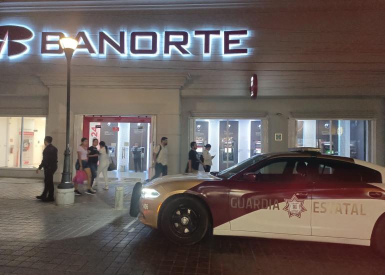 Al presentar una mayor afluencia y actividad económica durante el denominado ‘’fin de semana más barato del año’’, personal de la Guardia Estatal mantiene la proximidad en bancos y cajeros para preservar la seguridad tanto para cuentahabientes como para el personal que labora en estas instituciones.