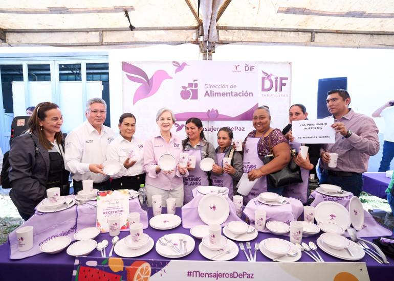 Destaca la entrega de más de 24 millones de raciones de desayunos escolares y el equipamiento de más de 1,600 desayunadores en escuelas de Tamaulipas; la estrategia de participación y transformación comunitaria Lazos del Bienestar, la entrega de cerca de 118 mil servicios y apoyos, a través de las brigadas Transformando Familias; equipamiento de centros asistenciales; así como atención y protección a grupos vulnerables como niñas, niños y adolescentes, mujeres, adultos mayores, personas discapacitadas, entre otros.