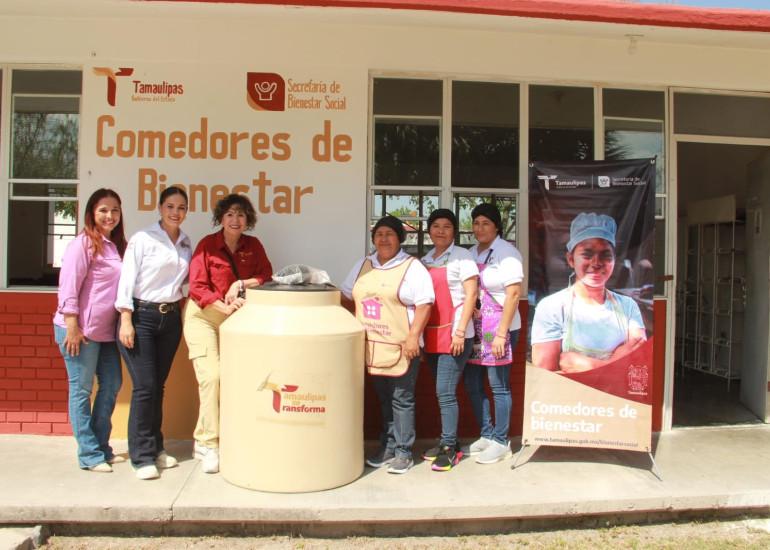 Como parte de la gira, las autoridades se trasladaron a la cabecera municipal de Jiménez, donde visitaron el Comedor de Bienestar para supervisar sus instalaciones y entregar un tinaco, beneficiando a los comensales del lugar.