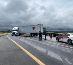 Guardia Estatal atiende accidente de tráiler por pavimento húmedo