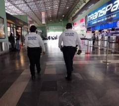 Vigilancia permanente de la Guardia Estatal en centrales de autobuses.