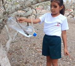 Elaboran niñas y niños bebederos para aves con material reciclable