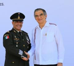 Asiste gobernador Américo Villarreal a toma de protesta del comandante interino de la 48 Zona Militar