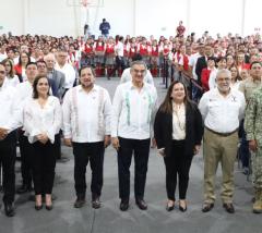 Inaugura Américo Villarreal gimnasio en Escuela Normal de Educadoras, legado de su padre