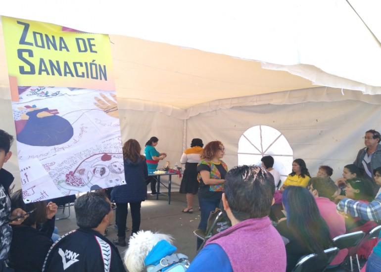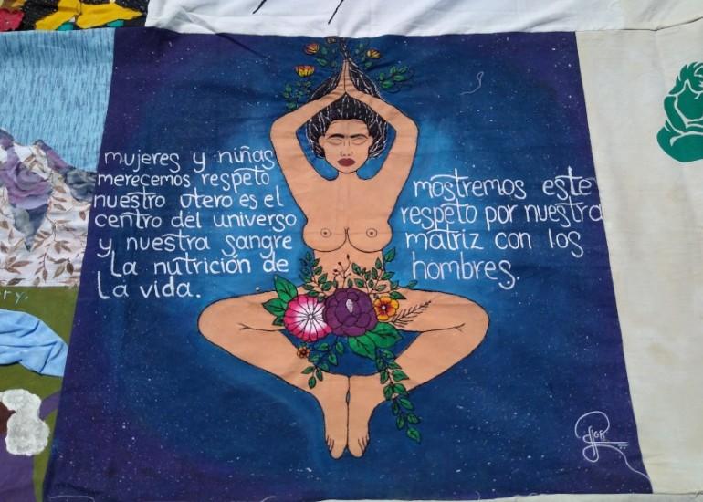 Entre pequeñas carpas en donde se ofrecía atención psicológica, asesoría legal, conversatorios, y espacios de sanación, mujeres, hombres, niñas y niños se detenían a observar los retazos de tela que yacían en el cemento para encontrarse con una gran diversidad de mensajes.