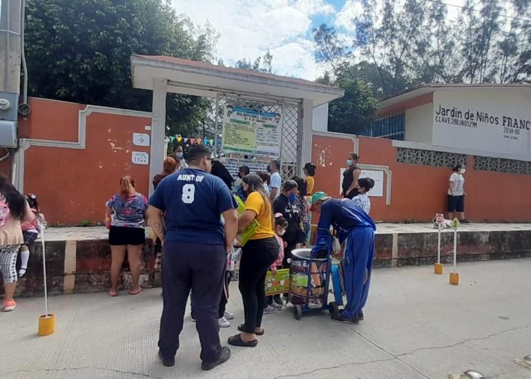 Tampico, Tamaulipas, 21 de octubre 2022.- Afuera del Jardín de Niños "Francisco I. Madero", ubicado en la colonia Las Américas, de la ciudad de Tampico, madre y abuela de una menor que cursa el tercer año de preescolar denuncian públicamente la agresión sexual de una niña de cinco años, generada por una persona del sexo masculino que presta Servicio Social como estudiante del quinto semestre vespertino de la carrera de contabilidad en el CETIS 22.