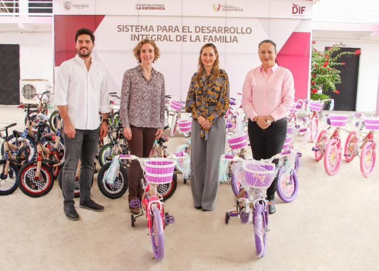 Gracias a la sinergia que el Sistema DIF Madero, que preside la Sra. Ana Cristina Organista de Oseguera, tiene con empresas socialmente responsables, fue posible que el organismo asistencial recibiera la donación de 35 bicicletas para el festejo del Día de Reyes.