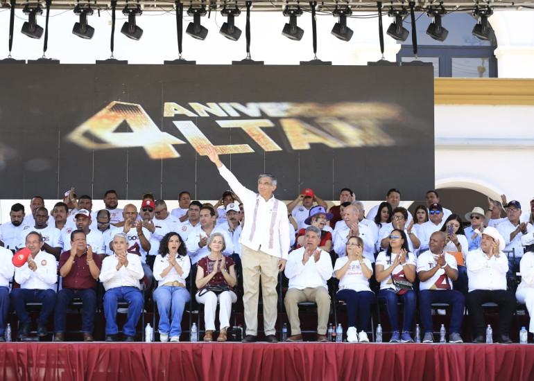 Antes de finalizar su discurso, el mandatario estatal dijo que tomó nota de las justas demandas expuestas por las y los trabajadores durante el desfile y aseguró que se van a atender con prontitud.