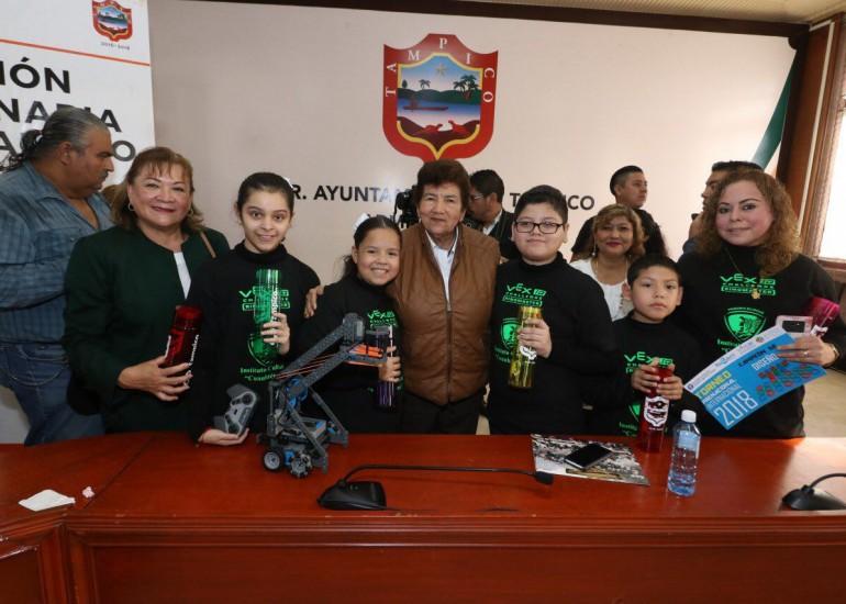 Antes de concluir la sesión de Cabildo, la presidente municipal reconoció a estudiantes del Instituto Cultural Cuauhtémoc que se han destacado en el área de Robótica y que representaron a Tampico en un concurso en la ciudad de Saltillo, obteniendo su pase a la olimpiada nacional que se celebrará en León, Guanajuato, en donde obtendrán la oportunidad de competir en el próximo mundial de Robótica representando a México.
