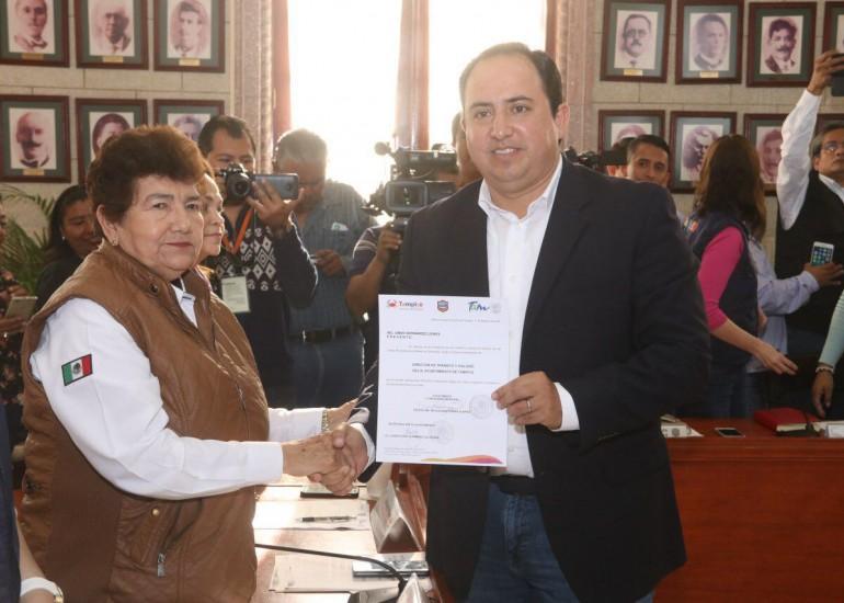 La alcaldesa entregó también, el nombramiento del nuevo director de Tránsito y Vialidad de Tampico, responsabilidad que recayó en el Ingeniero Omar Hernández Leines, quien cuenta con una exitosa trayectoria de 14 años dentro de la citada dependencia; relevando así del cargo al Capitán de Navío retirado, Jaime García Cárdenas; exhortando a desempeñarse con transparencia y honestidad para hacer de esta corporación, una dependencia de servicio a la comunidad.