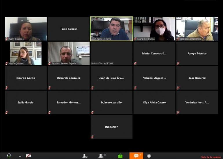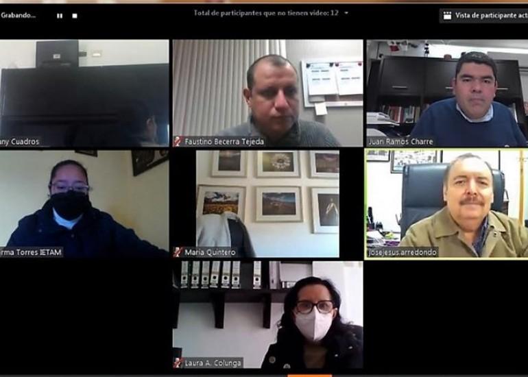 En la quinta reunión de trabajo realizada de manera virtual entre ambos organismos electorales participaron la Vocal Ejecutiva y Presidenta del Consejo Local del INE en Tamaulipas, Olga Alicia Castro Ramírez y el Consejero Presidente del IETAM, Juan José G. Ramos Charre, así como los Secretarios Faustino Becerra Tejeda y Juan de Dios Álvarez Ortiz, además de las y los consejeros electorales y funcionarios de ambos organismos electorales