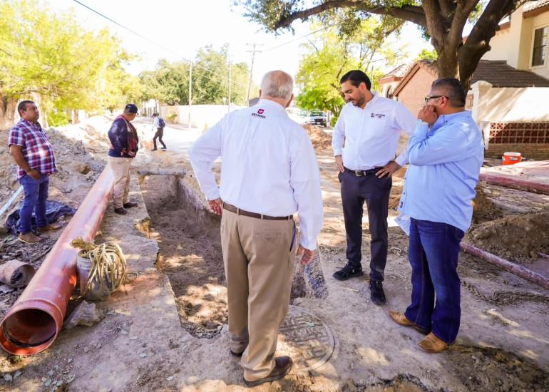El Presidente Municipal Carlos Peña Ortiz efectuó una visita de supervisión a la rehabilitación del subcolector de alcantarillado sanitario de 12 pulgadas de diámetro en que trabaja el Gobierno de Reynosa, en el bulevar Naranjos de la colonia Naranjos.