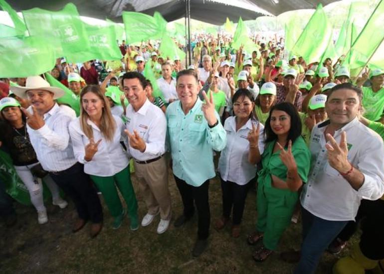 “Ustedes me conocen y saben que trabajo, y junto con Maki vamos a traer muchos beneficios porque estamos comprometidos con todos ustedes, los maestros, obreros, campesinos y todas las familias del país”, señalando que el objetivo este 2 de junio es pintar de Verde también el Senado, “queremos defenderlos allá, queremos y necesitamos a nuestro amigo Mario López en la Cámara de Diputados”.