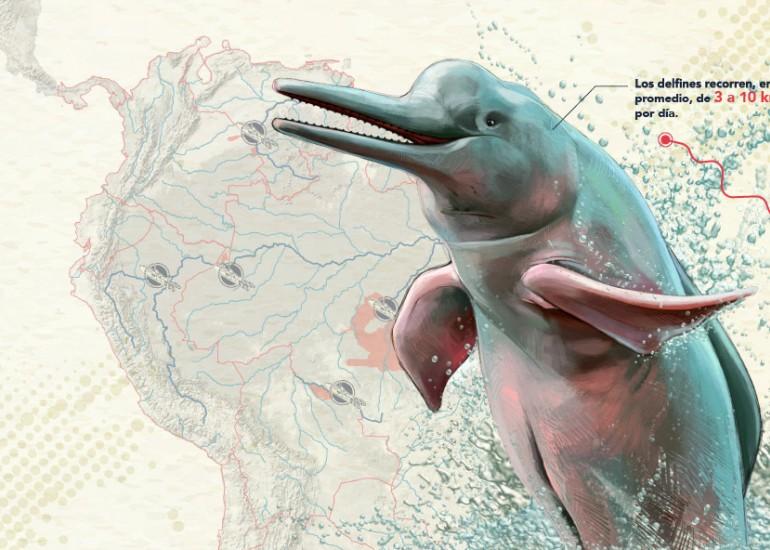 Éstas son sólo algunas alertas recogidas por un grupo de científicos después de monitorear por primera vez, con transmisores satelitales a 29 delfines de río de las especies Inia geoffrensis, conocido como delfín rosado, e Inia boliviensis o bufeo boliviano. Este seguimiento, entre 2017 y 2019, se ha hecho en seis grandes cuencas hidrográficas a lo largo de Bolivia, Brasil, Colombia y Perú, donde se desplazan, se alimentan y reproducen estos cetáceos.