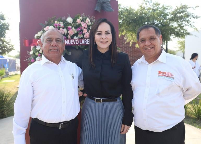 La alcaldesa Carmen Lilia Canturosas Villarreal junto al Sindicato Nacional de Trabajadores de la Educación (SNTE) rindieron un homenaje a todos los docentes de Nuevo Laredo en el marco de las celebraciones por el Día del Maestro.