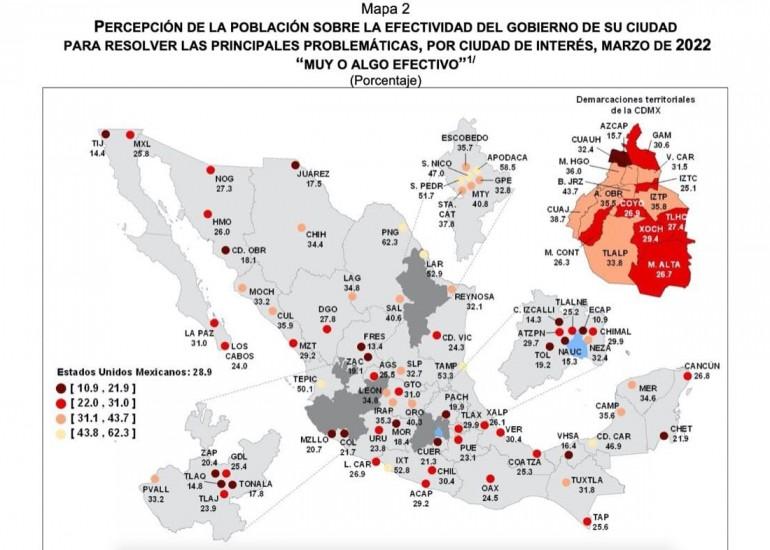 Estudios elaborados por el Instituto Nacional de Estadística y Geografía (INEGI), como la Encuesta Nacional de Seguridad Pública Urbana, colocan a la administración de Canturosas como la más efectiva para resolver la problemática urbana con un promedio del 52.9 por ciento.