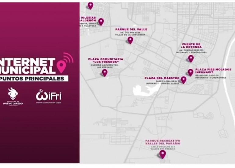 Las plazas que cuentan con el Internet Municipal son: Plaza de la Presidencia Municipal, Del Maestro, Juárez, Hidalgo, Insurgentes, Iglesias Calderón, La Libertad, Pies Mojados J. Longoria, Pies Mojados Francisco Villa, Pies Mojados Infonavit y Plaza Comunitaria Los Fresnos.